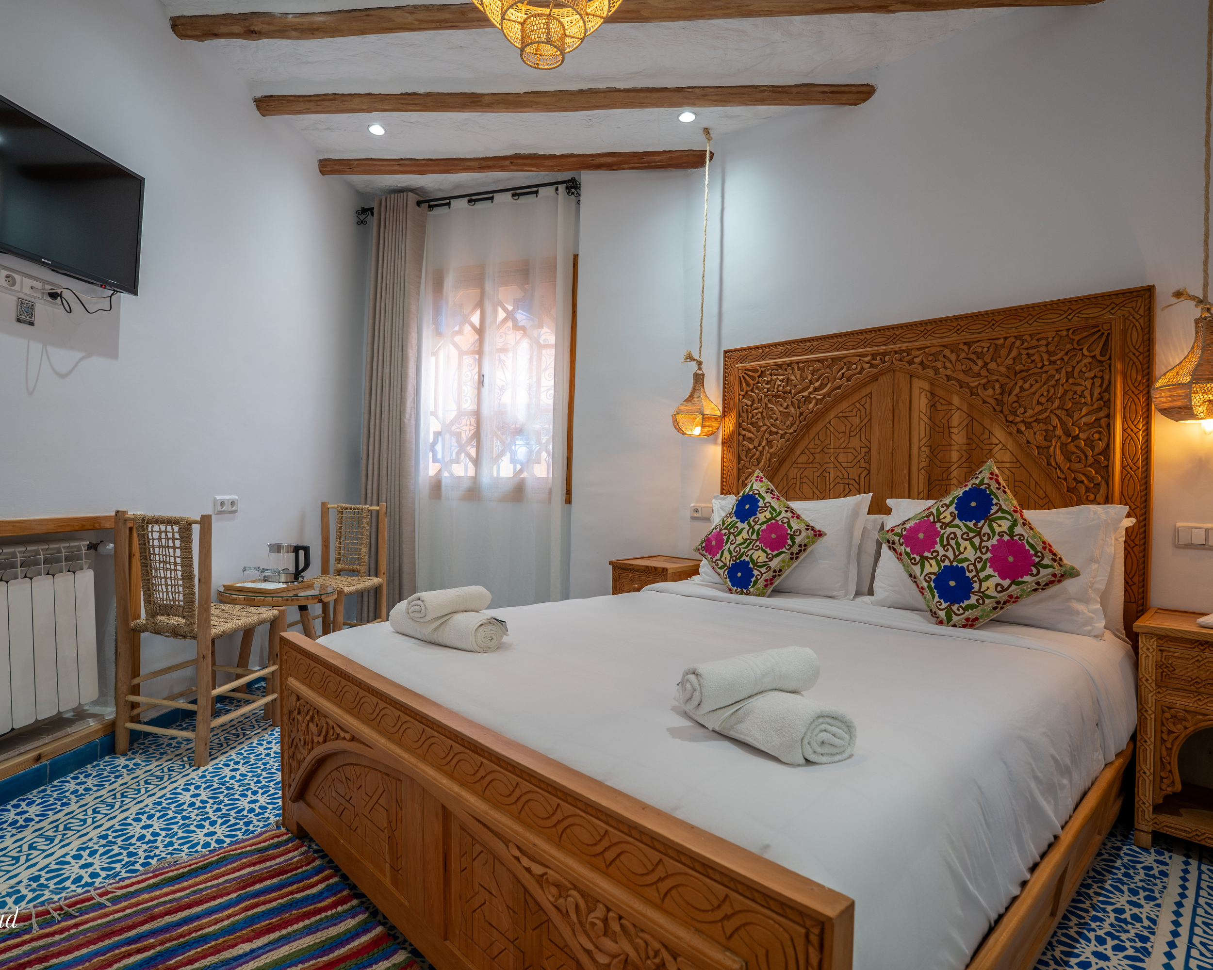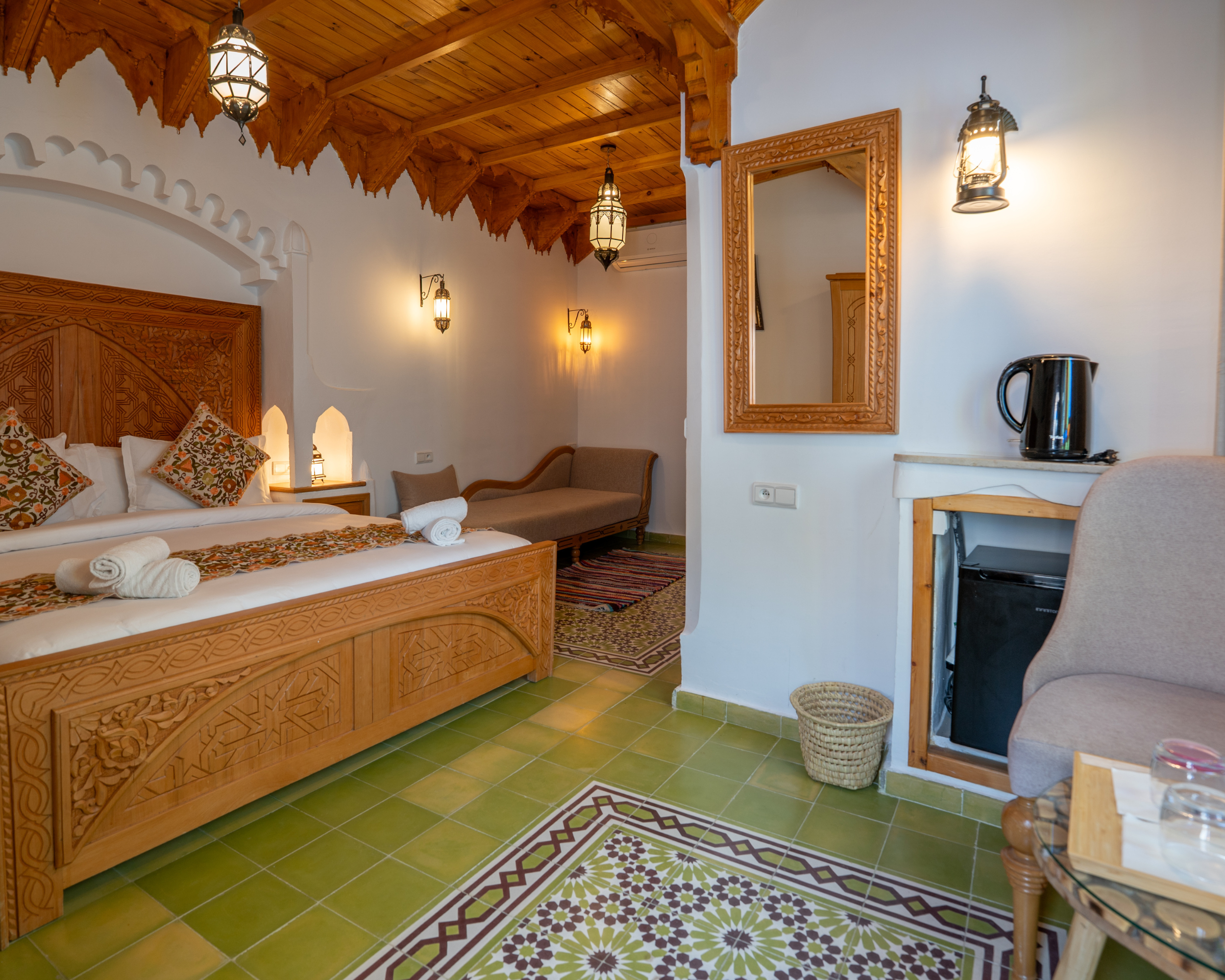 Pick any of our nine Riad rooms to experience the delightful decor, complemented by modern amenities for a comfortable stay.